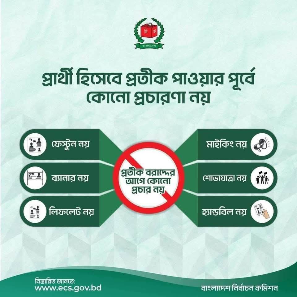 | ১ | ত্রয়োদশ জাতীয় সংসদ নির্বাচনে প্রচারণা সংক্রান্ত নির্দেশিকা | | ০৪-০১-২০২৬ | দেখুন | |